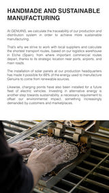 The installation of solar panels in our production plant has ensured that 68% of the energy used to manufacture Genuins is now renewable.