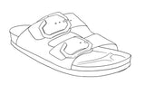 Camel leather sandal with anatomical sole and straps with adjustable buckles. Leather certified by suppliers Leather Working Group (LWG) with gold status.